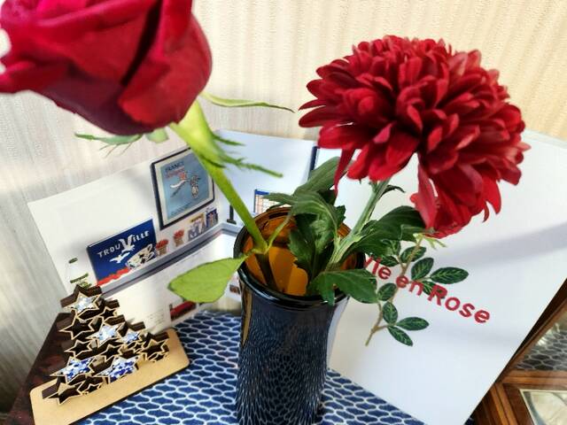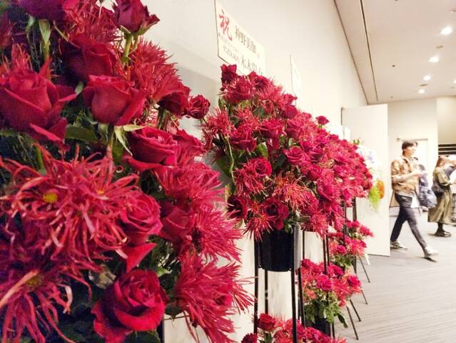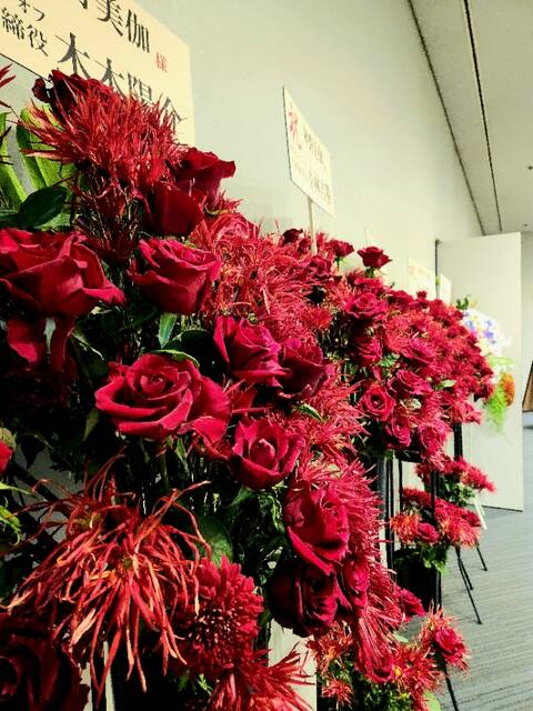 それは受付に飾ってあった赤い花々を